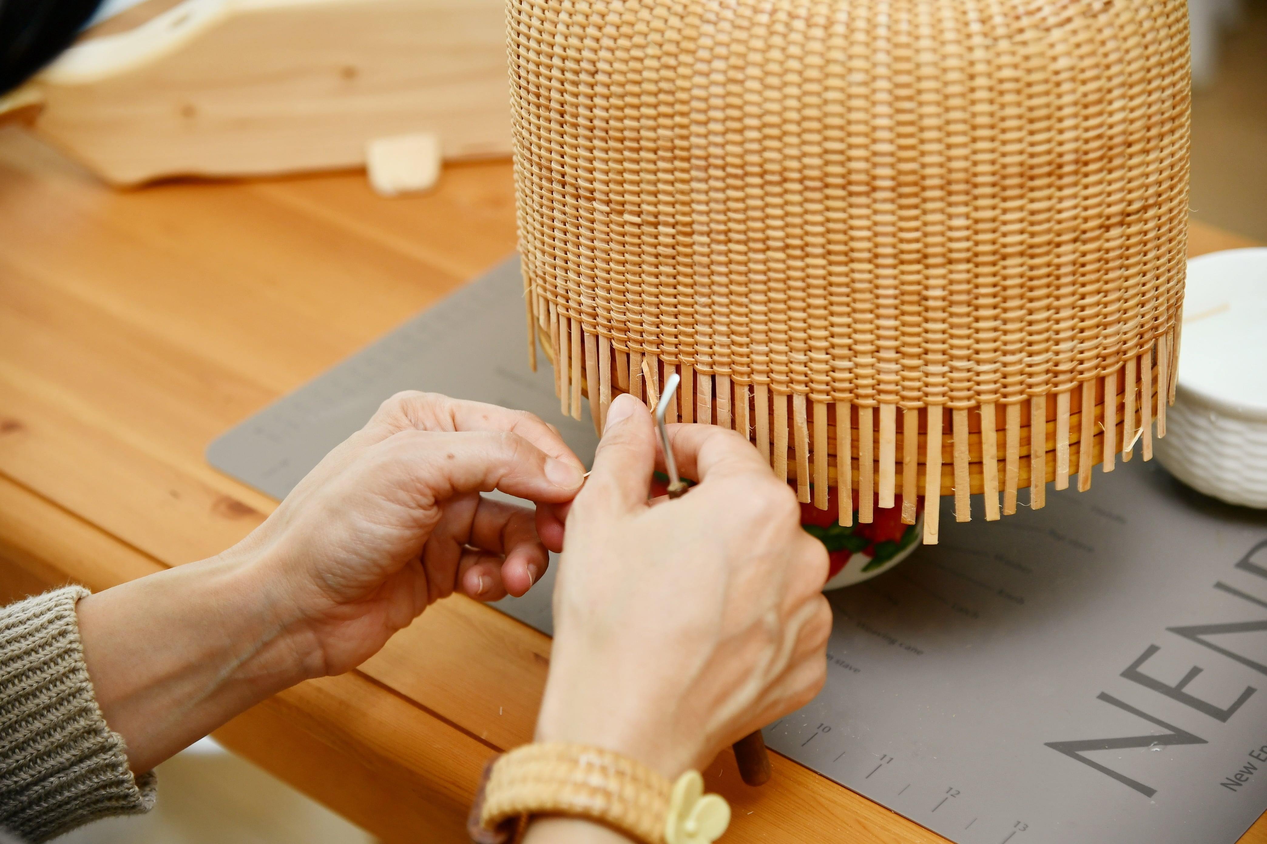 オンラインレッスン中級9インチオーバル ・モールド※レンタルです(レンタル期間6ヶ月) ・ベース ・リッド ・リム ・プラグ ・ケーン ・ハンドル ・ノブ ・ワッシャーなど必要なもの全てキットにしてお送りします ナンタケットバスケットオンラインレッスンは所定の手続きに従ってオンラインレッスン購入申込をするものとし、当該申込手続き完了をもって、原則として購入契約の成立とします。尚、購入契約成立後の会員の都合によるキャンセル、返金はできません。 Nantucket Tokyo Association 2024年 1月
