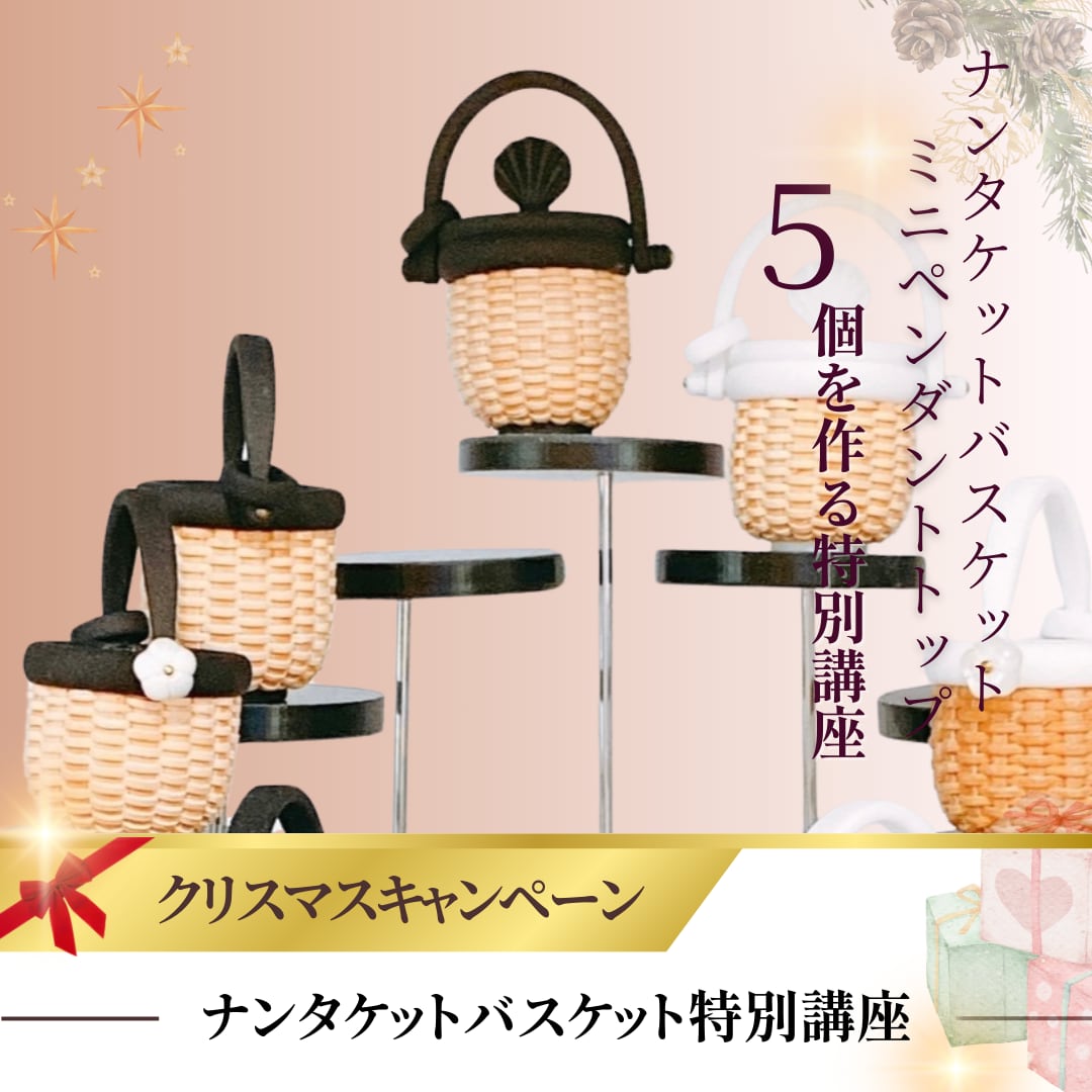 人気のナンタケットバスケット「ミニペンダントトップ」を、私と一緒に制作していただく特別講座です。